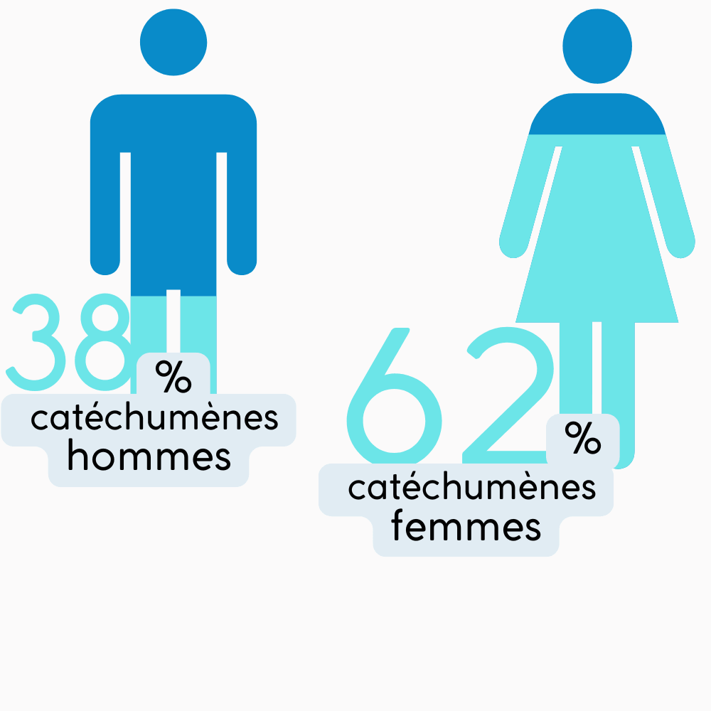 La majorité des catéchumènes est issue de familles de tradition chrétienne. On observe depuis quelques années l’importance de ceux et celles qui se déclarent sans tradition religieuse ou sans tradition religieuse connue.