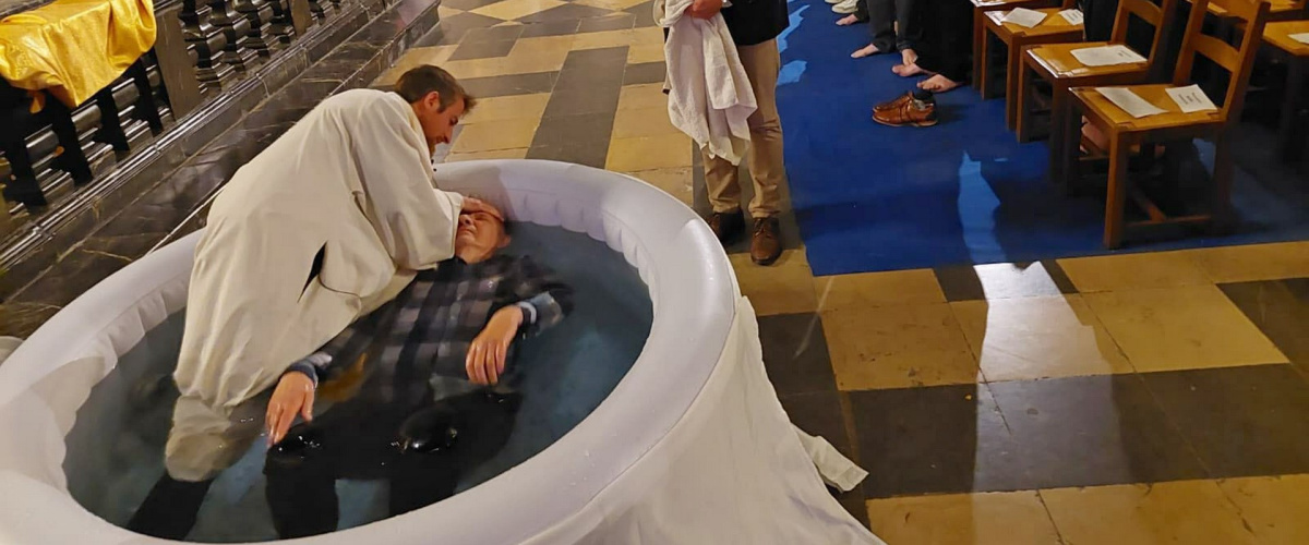Photo ci-dessus (©Thomas Lanier) : Samedi saint 04/04/2026 - cathédrale de Chambéry. Le père Loïc d’Aranda baptise par immersion 12 catéchumènes.